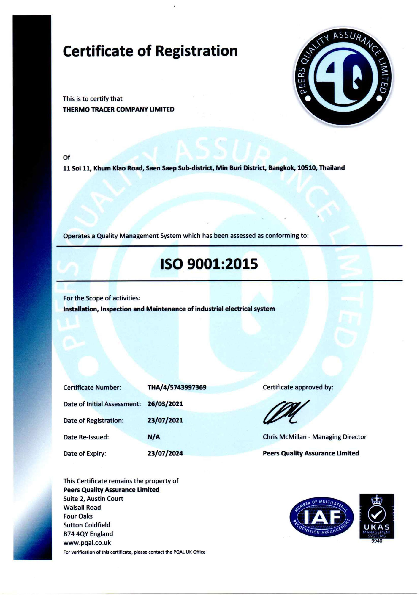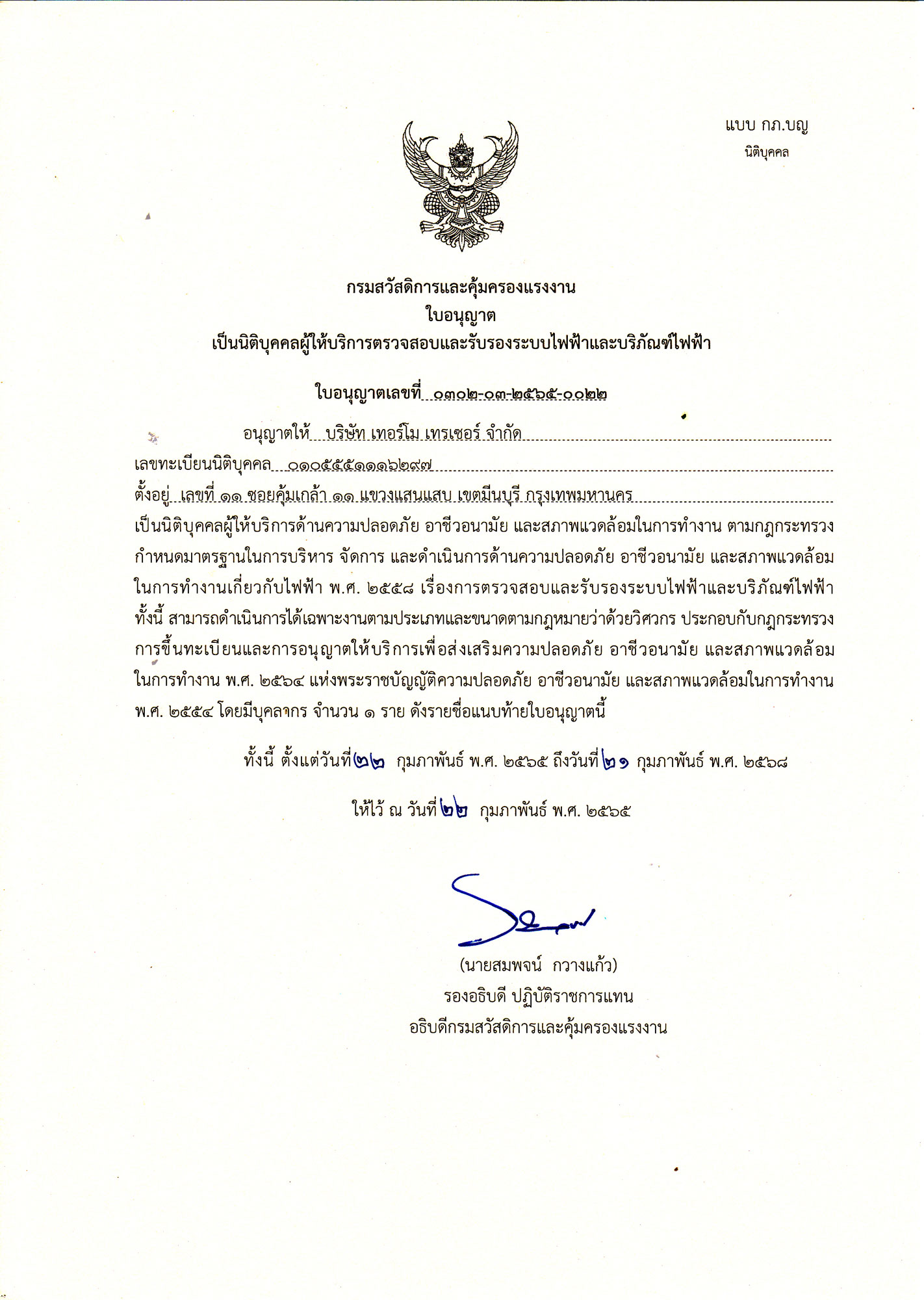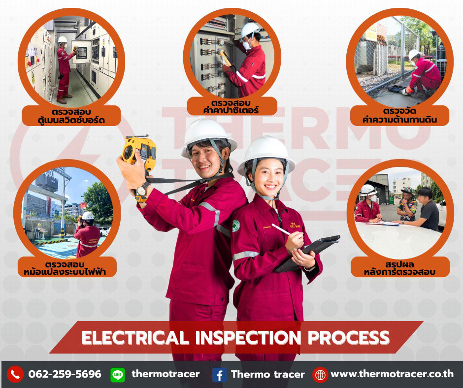 บริษัท เทอร์โม เทรเซอร์ จำกัด พร้อมให้บริการตรวจสอบระบบไฟฟ้าและลงนามรับรองความปลอดภัย โดยวิศวกรระดับสามัญวิศวกรและผ่านการขึ้นทะเบียนมาตรา 9 พร้อมทีมงานวิศวกรไฟฟ้าผู้เชี่ยวชาญและมากประสบการณ์ ซึ่งผ่านการอบรมผู้เชี่ยวชาญด้านการถ่ายภาพความร้อนชนิดอินฟราเรด ระดับ 1